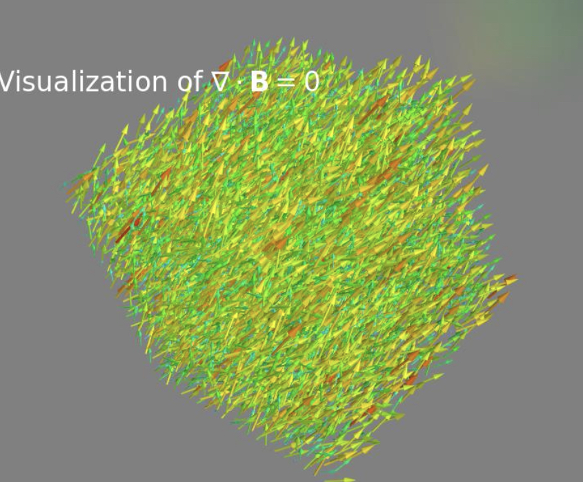 발산이란 벡터장에서 벡터가 어떻게 변화하는지를 나타내는 개념으로, 벡터장의 발산이 0이 되면 벡터장에서 변화가 없다는 것을 의미합니다. 이는 물리학에서 중요한 법칙 중 하나인 가우스 법칙의 일부분으로, 자기장에 대한 맥스웰 방정식 중 하나입니다.
